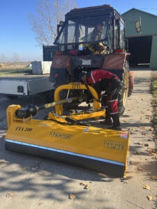 A megvalósult műszaki tartalom: A FRONTONI TTA-200 típusú munkagép műszaki paraméterei: Traktor három pontjára szerelhető, szabadonfutós kardántengellyel, szögben billenthető, úszófej munkaszélessége 1980 mm, zúzható átmérő: max.40 mm, zúzófejre szerelt kések száma: 20 db kalapácskés, önsúly: 570 kg, traktorteljesítmény igény(min,): 70-90 LE, zúzófej úszó funkcióba állítható.